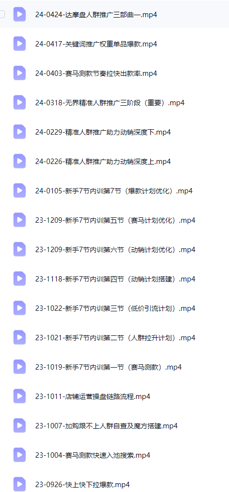 ├──24-0417-关键词推广权重单品爆款.mp4 361.42M