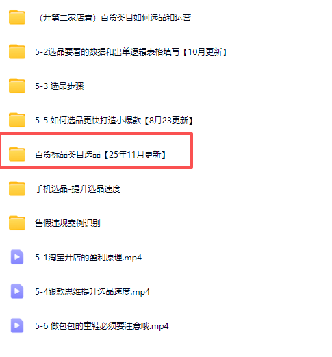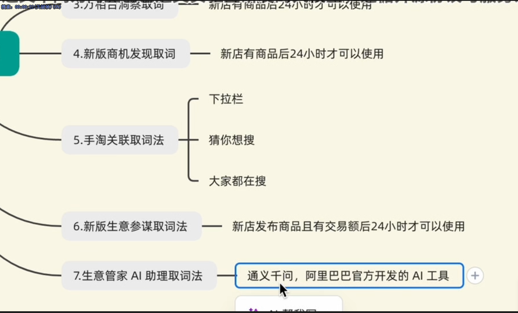 - #11月12日更新:5、百货标品类目选品、4-6手淘关联取词法、4-7 生意管家AI 取词