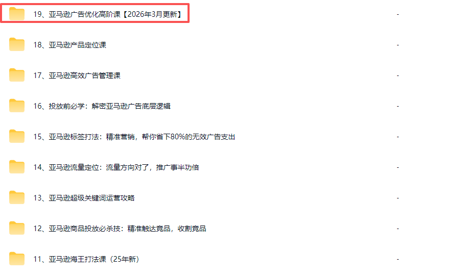└──19、亚马逊广告优化高阶课【2025年11月更新】