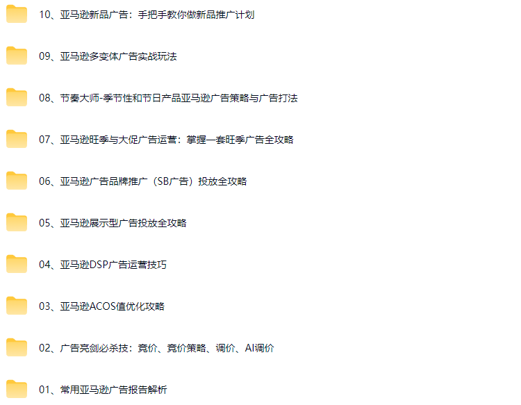 | ├──第68期亚马逊广告高阶课程·广告底层逻辑_广告优化_广告管理-杭州-2509.mp4 4.86G - | ├──第69期亚马逊广告高阶课程·备战旺季_备战亚马逊黑五网一-厦门-202510.mp4