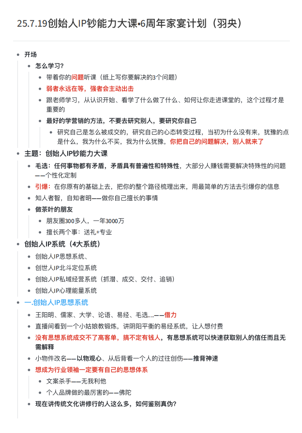 - 创始⼈IP钞能⼒⼤课•6周年家宴计划,文案大师最新力作!!!