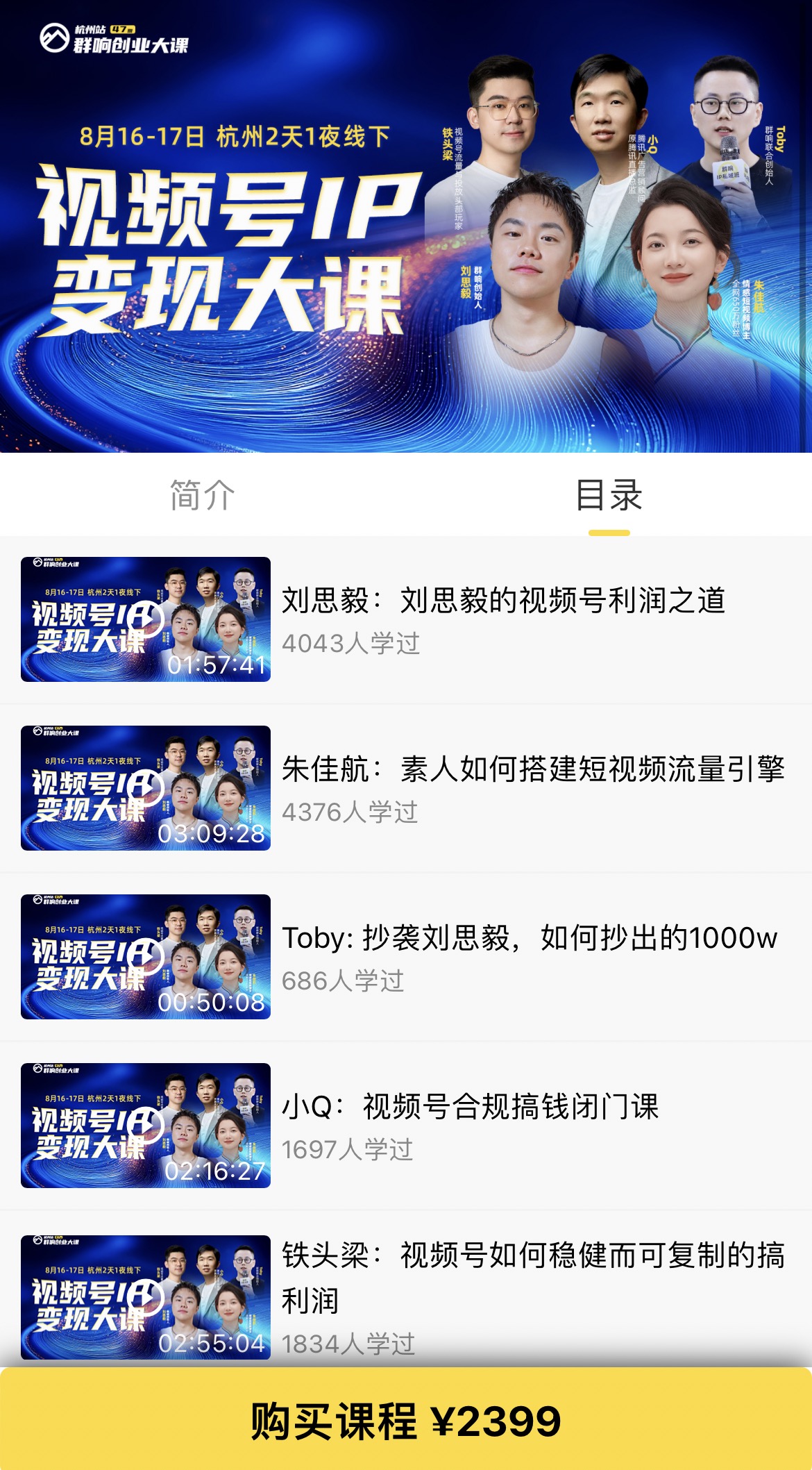 - 群响视频号ip变现大课8月16-17日 杭州2天1夜线下课(价值2399元)