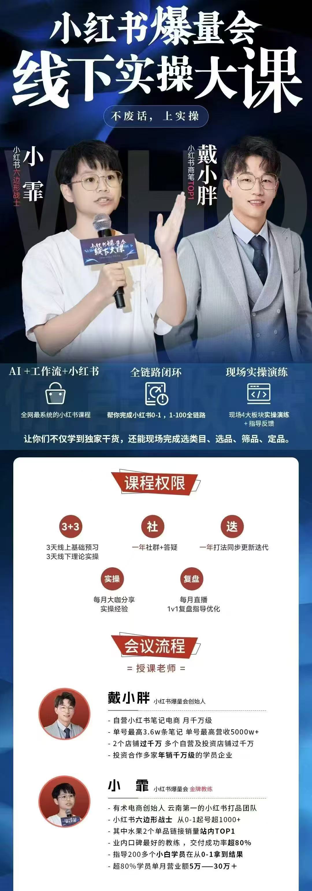 📣想让账号流量起飞却摸不着门道?从素人到百万博主差哪一步?🚀 10月24-26日,戴小胖小红书爆量会线下课开课啦!全网最系统的小红书运营课,手把手带你打通「从0到1冷启动」+「从1到100破圈增长」全链路!💥