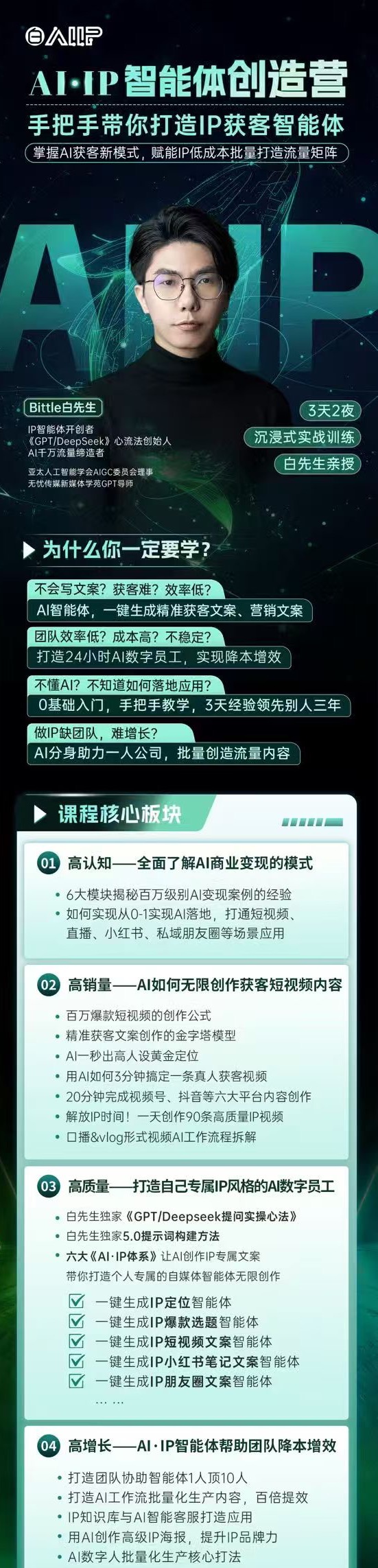 这是能让老板创始人有顿悟级别的课程。 - 赠送4月3月AI·IP智能体创造营,全程录像+笔记智能体交付