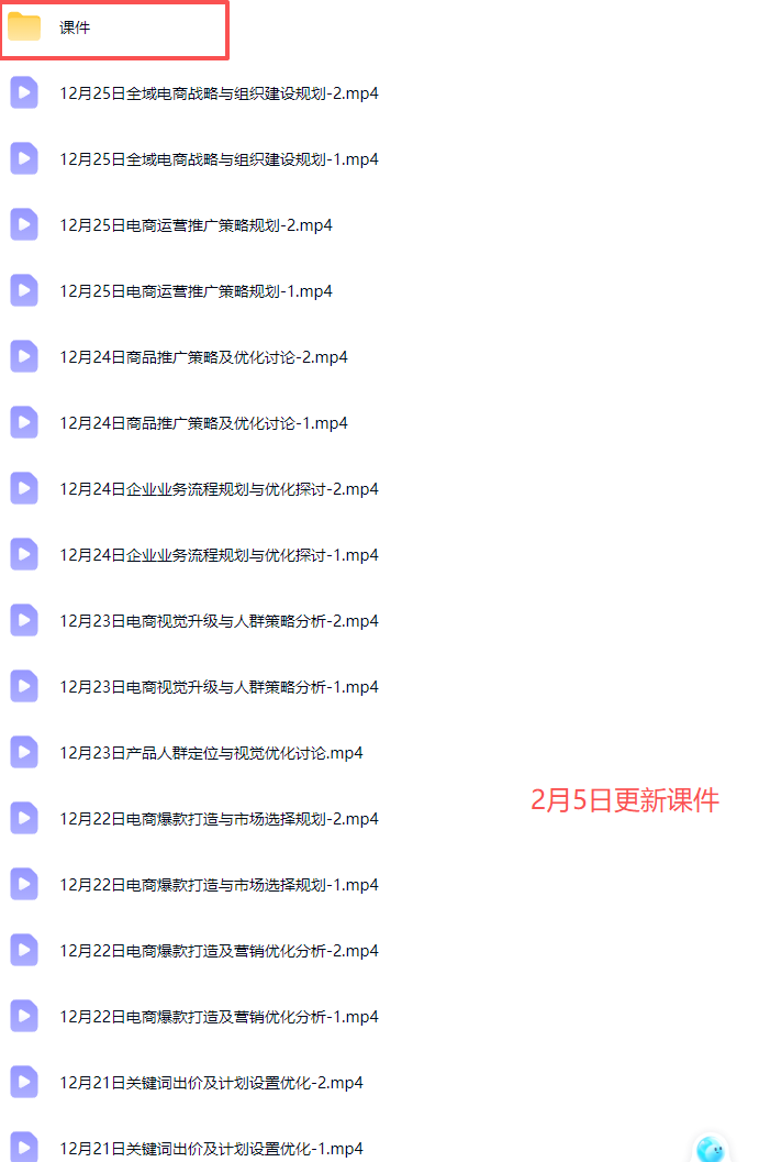 ├──12月22日电商爆款打造与市场选择规划-1.mp4 316.91M