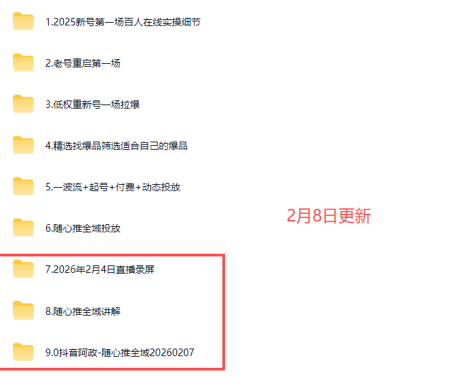 • #2月8日更新:抖音阿政-随心推全域20260207